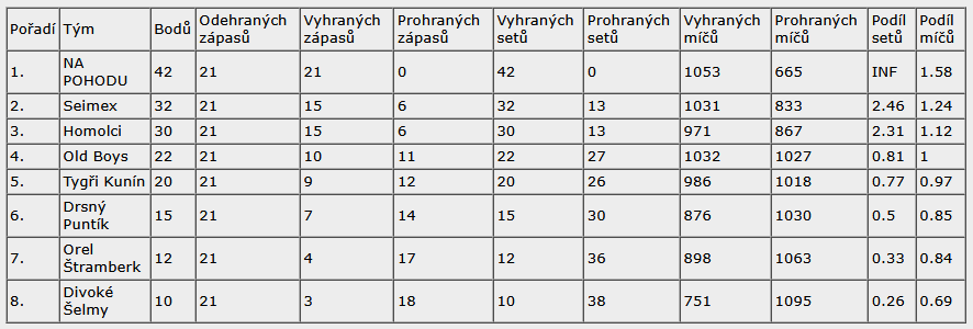 Sezóna 2016/2017 okresní volejbalové ligy smíšených družstev: